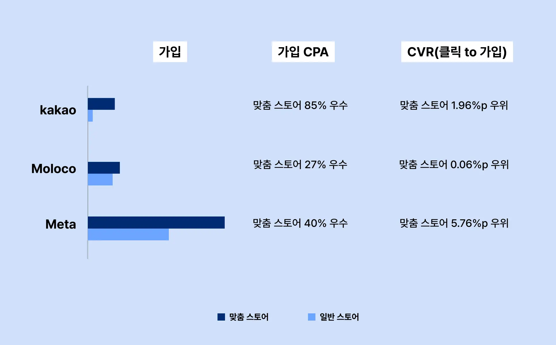 → 이를 통해 광고 소재의 메시지와 랜딩의 맥락이 일치 및 연관성이 높을수록 유저들의 전환 이후 행동(가입)이 활성화 되는 점을 확인했습니다.