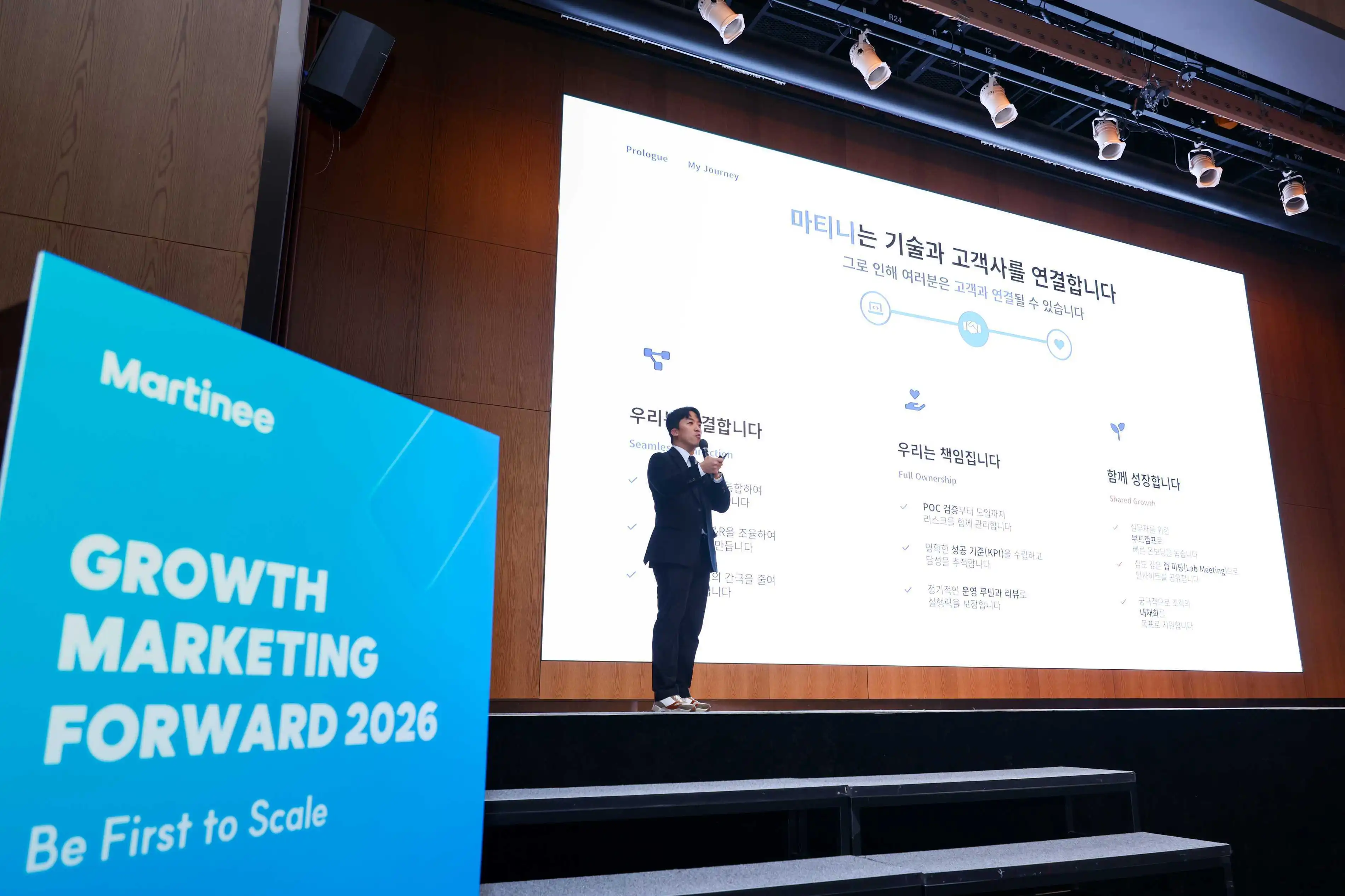 지난 2월 24일, 롯데호텔 월드 크리스탈볼룸에서 그로스 마케팅 포워드 2026(Growth Marketing Forward 2026, 이하 GMF 2026)이 개최되었습니다. GMF 2026은 풀퍼널 마케팅 에이전시 마티니 아이오가 주최한 첫 번째 마케팅 컨퍼런스로, ‘Be First to Scale(’을 주제로 2026년 마케팅 목표 달성을 위한 구체적인 전략과 실무 사례를 다뤘습니다.