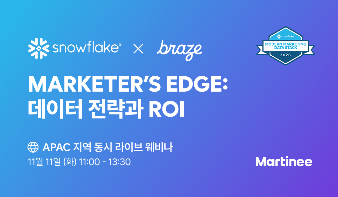 마티니가 스노우플레이크가 주최한 'Marketer's Edge: 데이터 전략과 ROI' APAC 웨비나에서 브레이즈를 활용한 롯데ON 사례를 발표했습니다.